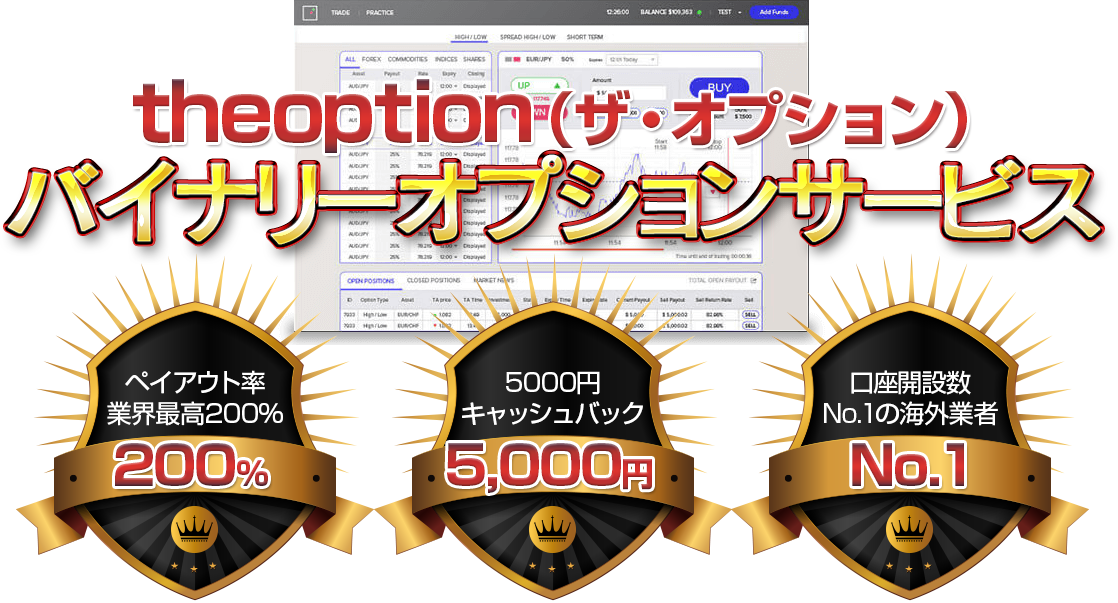 手数料無料だけではなく、入金にあわせて最大で10万円のボーナスが付くのがtheoptionのすごいところです。取引量に対する還元キャッシュバックを受けれるのもトレーダーに支持されているポイントです。